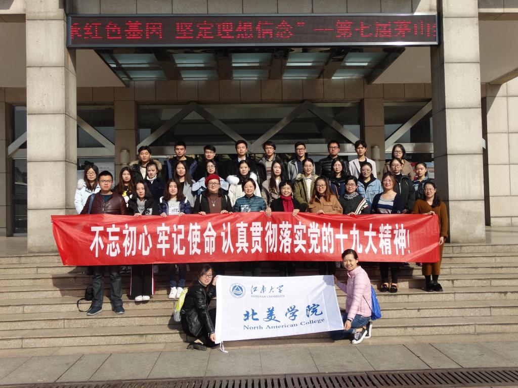 为贯彻落实十九大精神,进一步发扬党的优良革命传统,增强党员的先锋模范作用,11月24日,国际教育与北美学院组织学生支部党员前往茅山新四军纪念馆参观学习。