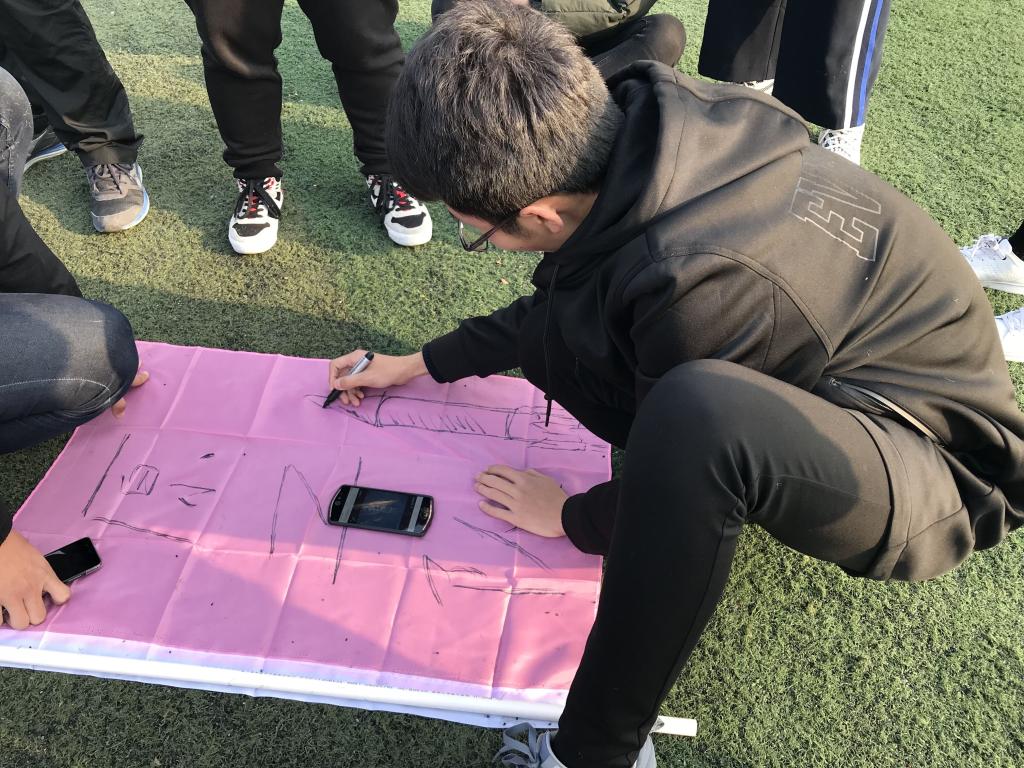 活动开始,为了让大家迅速进入活动状态,教练让同学们互相握手互相熟悉,起初同学们还是不能够完全融入其中,随后教练便要求同学们围成一个圈并以圈为整体,一起协作完成训练。进行了简单的热身训练后,在教练的带领下,全体参训学员被分成四个小组,由每组自行商讨挑选队长,在确定每队的队名、口号、队歌、队形之后便开始了正式的素拓训练。训练以小组比拼的形式展开,各队在队长的带领下,合力完成“同心鼓” 、“能量传输”等训练环节,各小队之间竞争激烈,成绩不分伯仲,训练场面火爆,大家在相互信任,相互配合中共同完成各项任务,最终圆满结束了本次拓展活动。
