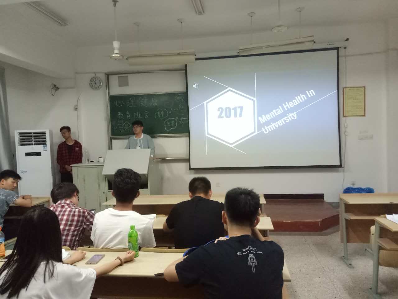 班会由班长叶展讲话拉开序幕。学习委员李一波用英文讲解了主题班会的ppt,讲述了什么是心理健康和如何预防心理健康问题。随后团支书许艺苇与同学们进行问答互动,同学们积极参与,踊跃的表达自己的想法。问答结束后学习委员李一波深情地朗诵诗歌《假如生活欺骗了你》,班长叶展带领大家合唱歌曲《我希望》。接下来辅导员王老师结合大学生的生活和自身经历与大家分享了如何预防心理健康,如何与舍友正确相处。紧接着,大家又做了贴纸牌的心理小游戏。最后,班长叶展播放了大学生心理健康视频,在合影留念中结束了本次心理月主题班会。