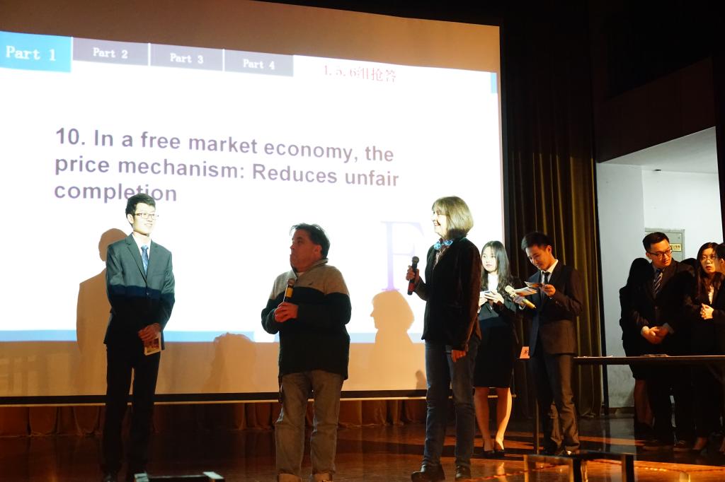 竞赛开始前,荆燕老师致辞,对中博教育长期以来为我院学科竞赛提供的支持表示感谢,期待选手们的精彩表现,预祝本次比赛圆满成功。本次活动分为四个环节:必答题、抢答题、看图估价和应用报表题。来自北美学院、商学院的18名选手,基础扎实、思维敏捷,表现出色。在必答题环节中,选手们不甘落后,势均力敌;抢答环节更是竞争激烈,难以平分秋色。比赛中还穿插了点钞趣味游戏,并邀请外教David 、Julie到现场加油,缓解选手压力,将气氛推到了高潮。看图估价环节中,第六组同学遥遥领先,占取先机。随着比赛进入紧张刺激的应用报表题,各组选手更是倾尽全力,竞争进入白热化阶段。