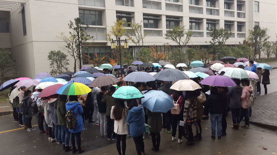 英语莱吧晨读会每周周一至周四早上7:00-7:45进行,活动地点在北美学院办公大楼门前左侧,风雨无阻,由指导老师和若干外教每天陪同指导。